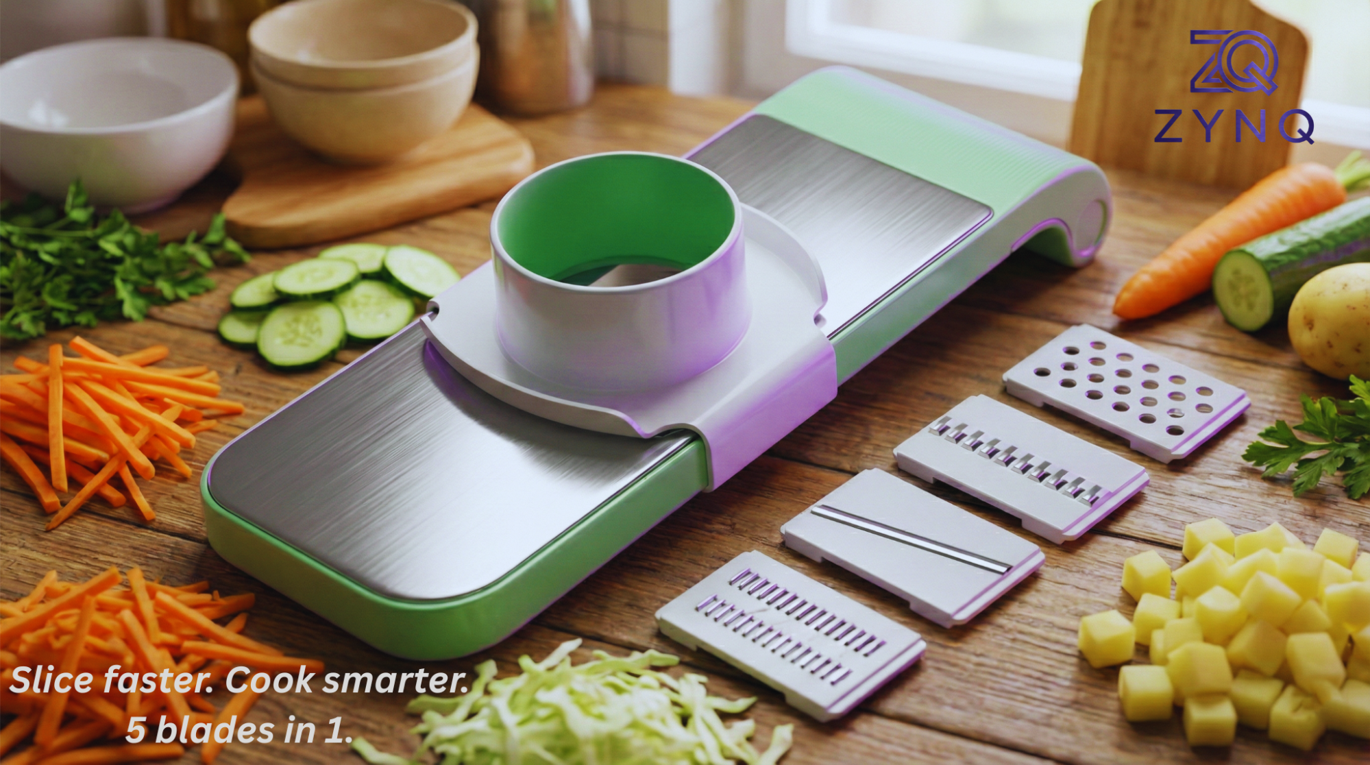 Slice faster. Cook smarter. 5 blades in 1.